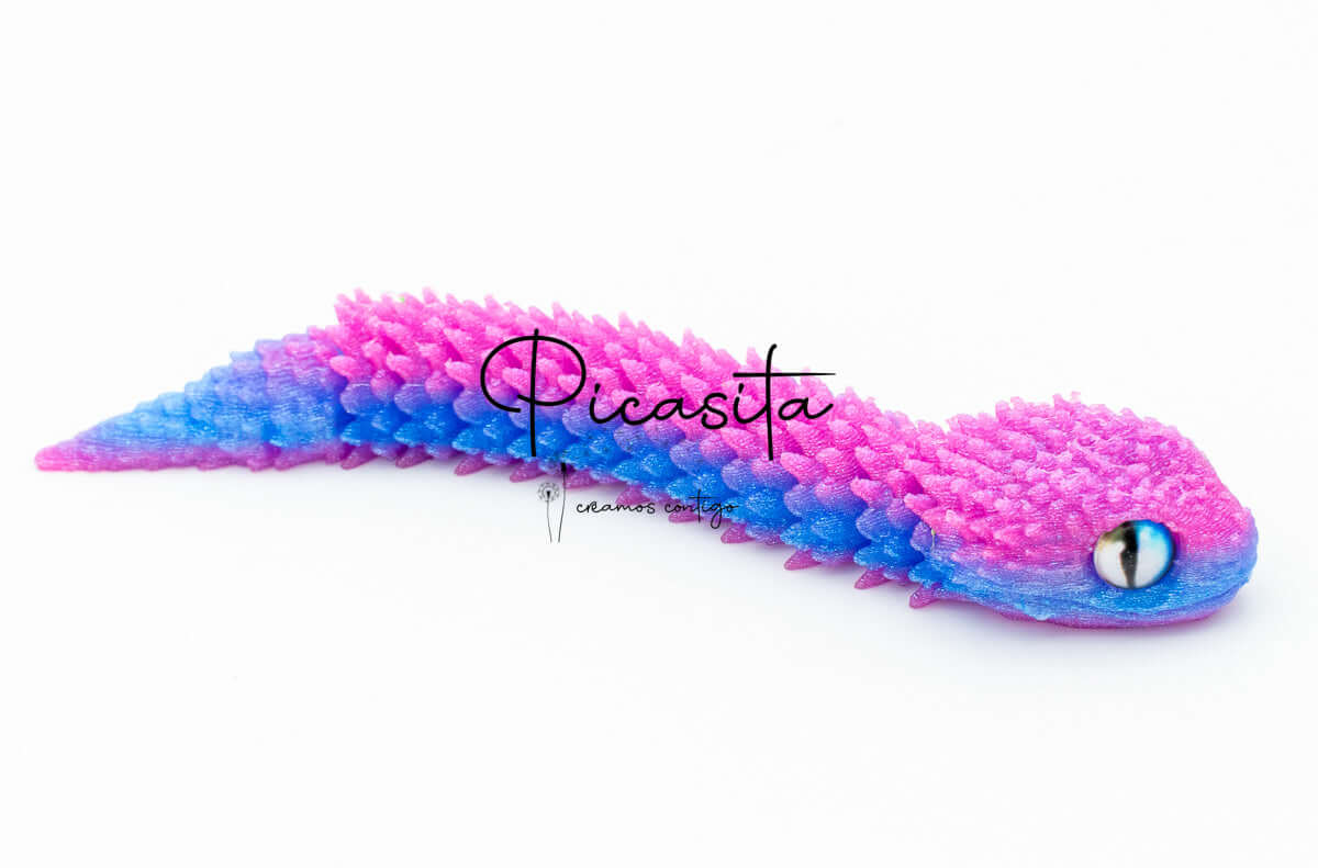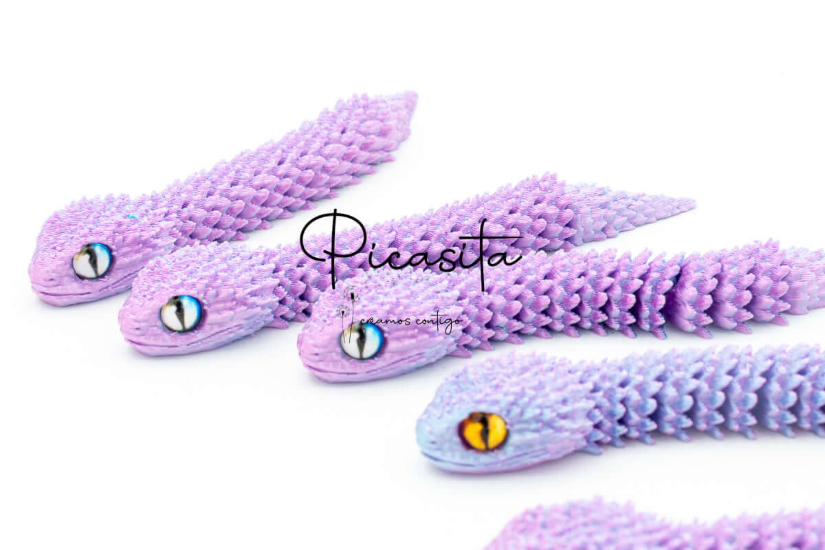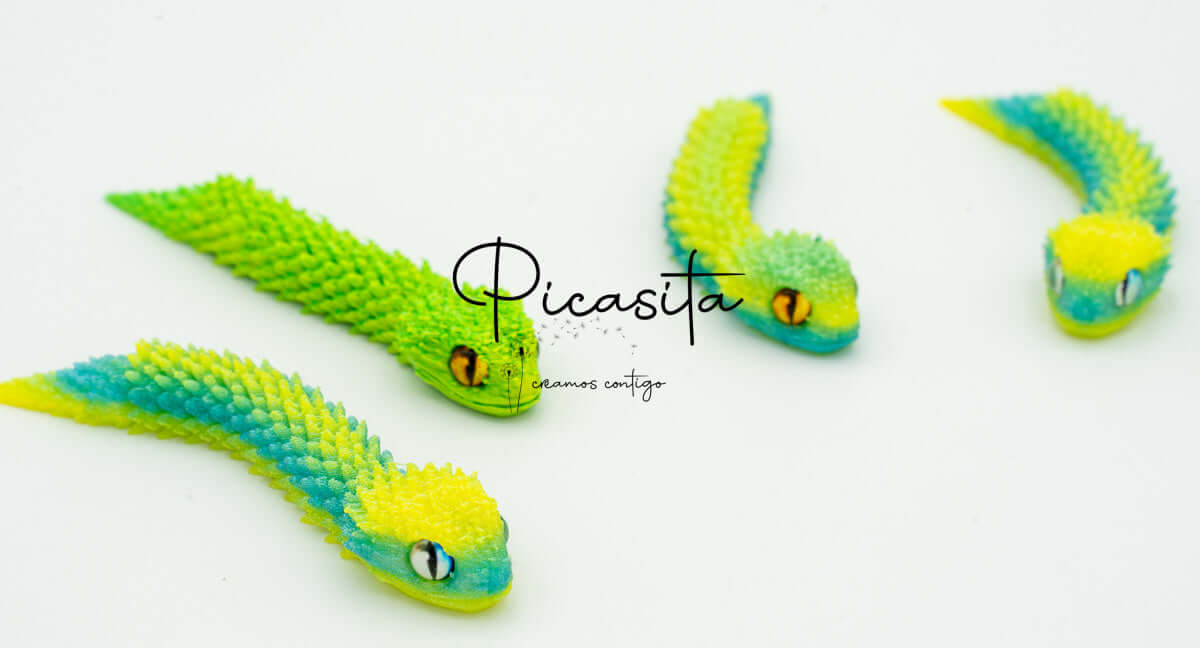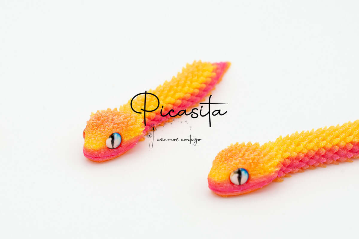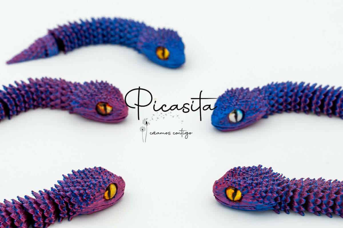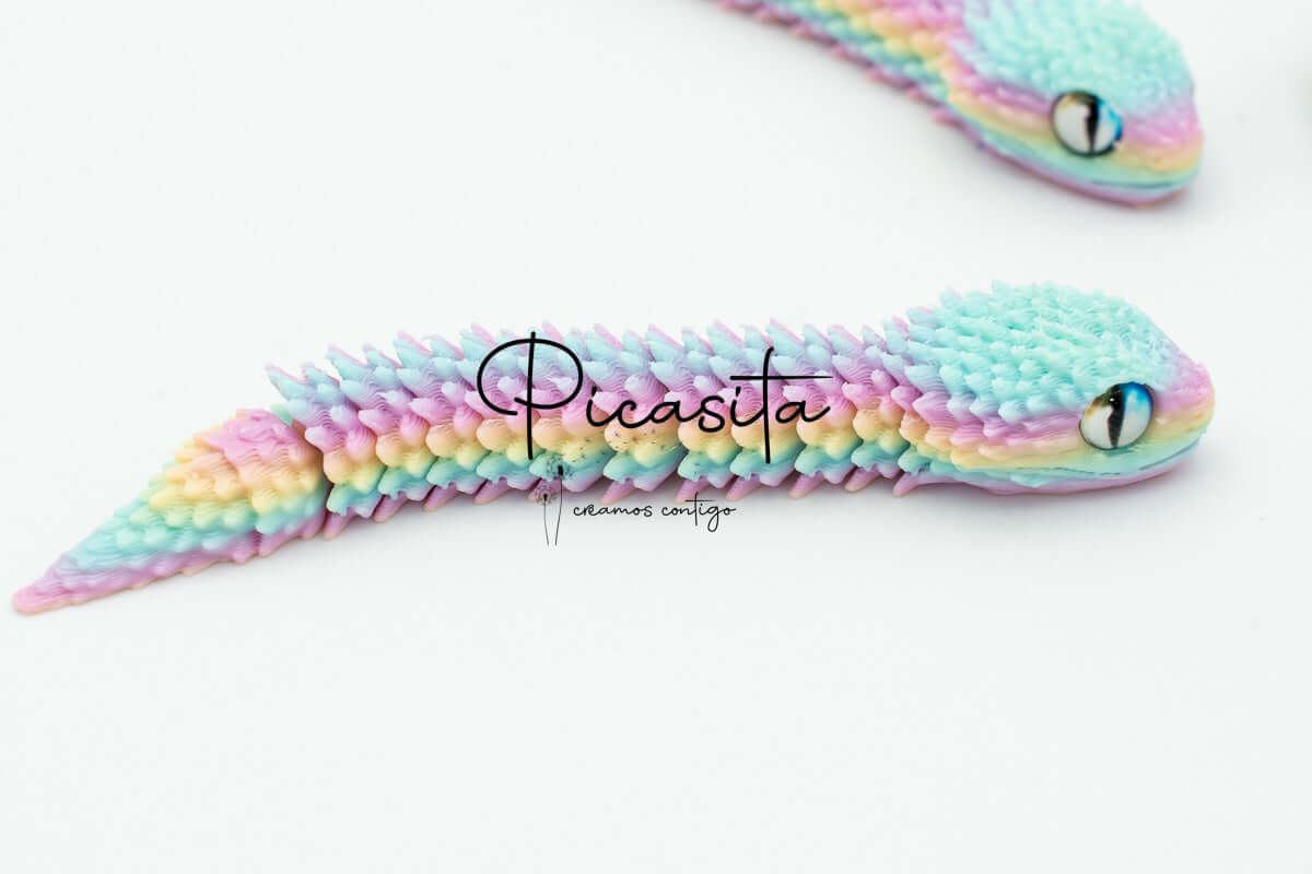 If you’re looking for an unmatched tactile and visual experience, our 3d viper is the perfect choice. At picasita, we have carefully selected this incredible articulated figure that captures the essence and mystery of stalking reptiles. Its textured scales and vibrant, intense colors make it a unique piece that sparks curiosity and imagination, offering a relaxing effect when handled.