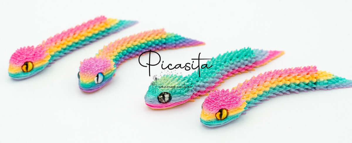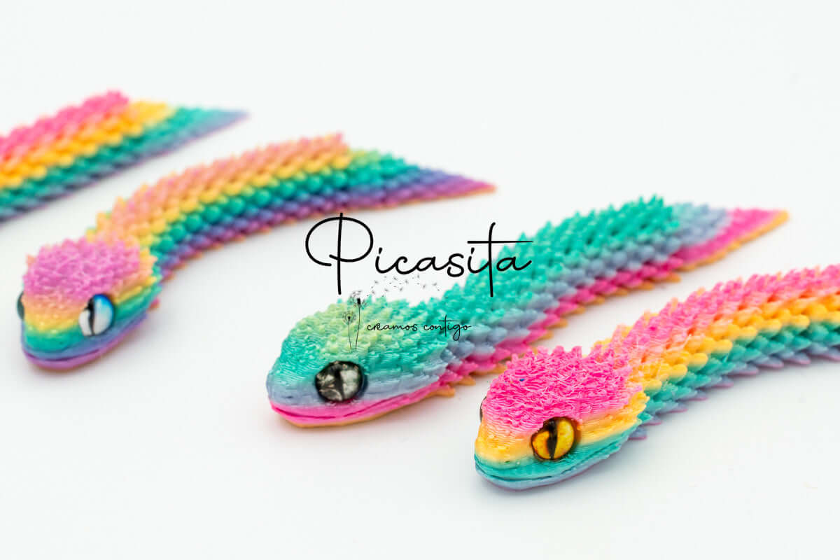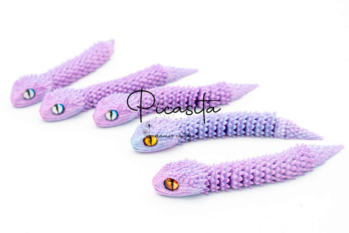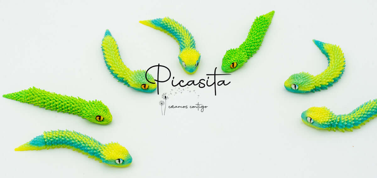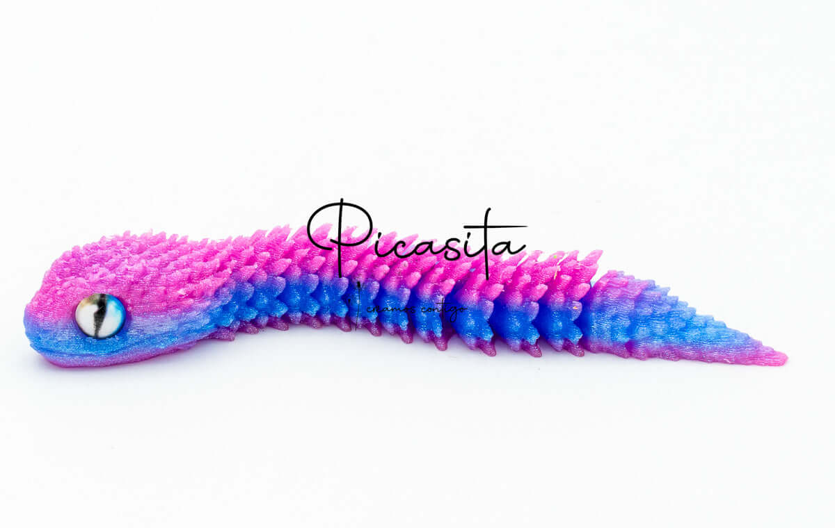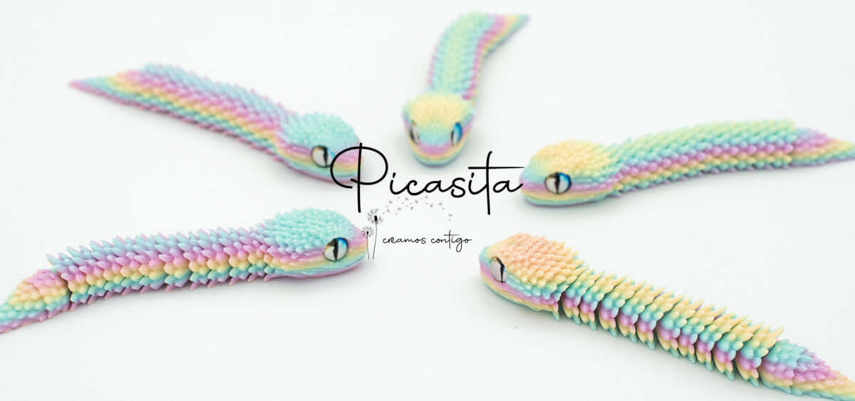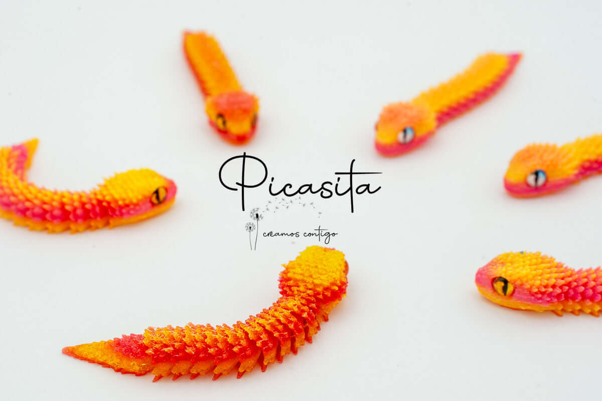If you’re looking for an unmatched tactile and visual experience, our 3d viper is the perfect choice. At picasita, we have carefully selected this incredible articulated figure that captures the essence and mystery of stalking reptiles. Its textured scales and vibrant, intense colors make it a unique piece that sparks curiosity and imagination, offering a relaxing effect when handled.