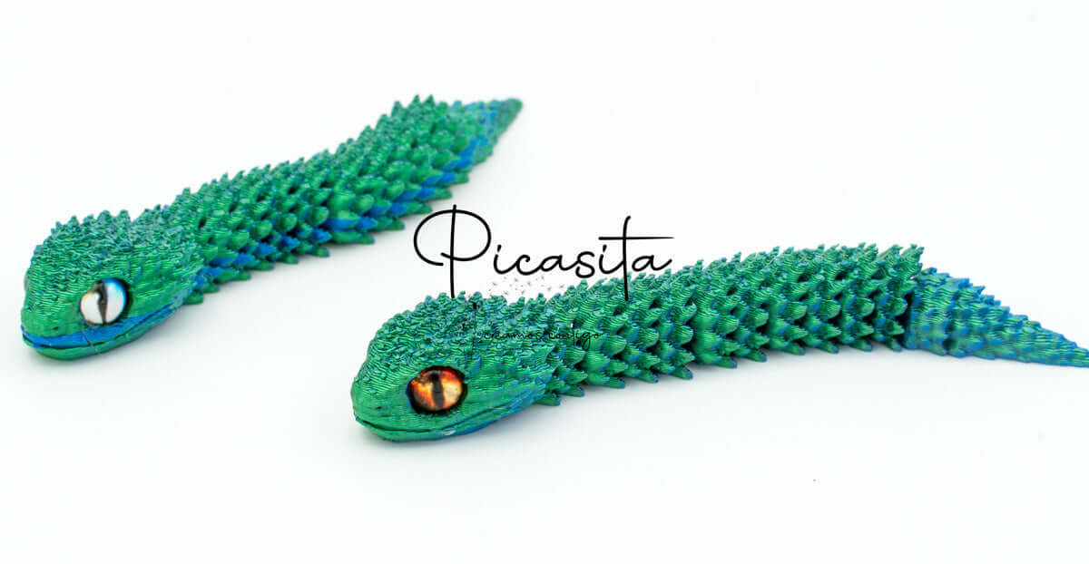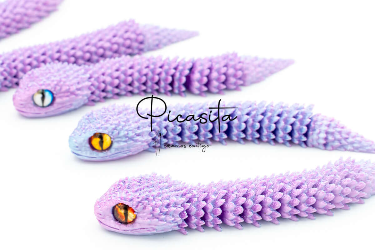 Each 3d snake is meticulously crafted using the most advanced technology in 3d printed toys. The chosen material is PLA (Polylactic Acid), a biodegradable polymer that is not only environmentally friendly but also allows for exceptionally detailed finishes. Measuring 8.0 cm in length, this small yet impressive creature features smooth movement thanks to its multiple joints, providing a hypnotic visual effect. It’s the perfect detail to gift exclusivity, amazement, and hours of sensory entertainment.