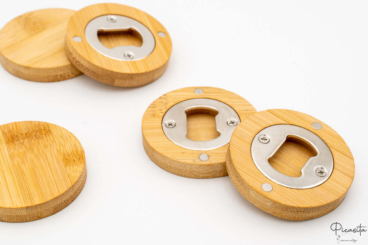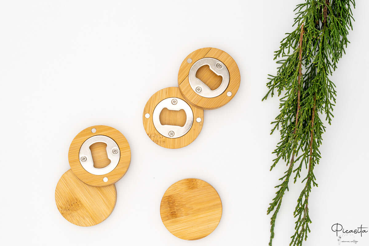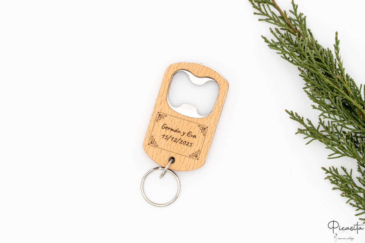 At picasita, we know that details make all the difference when organizing an unforgettable event. If you’re looking for a useful, durable keepsake with unmatched rustic charm, our personalized bottle opener is the perfect choice. Made with a sturdy stainless steel base and covered in warm natural beech or bamboo wood, this accessory not only opens drinks but also unlocks emotions and beautiful memories from your most special celebrations. It’s the perfect balance between natural design and everyday utility.