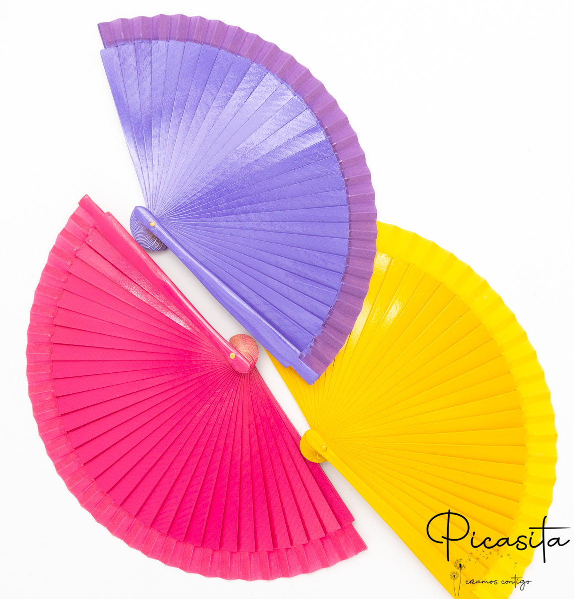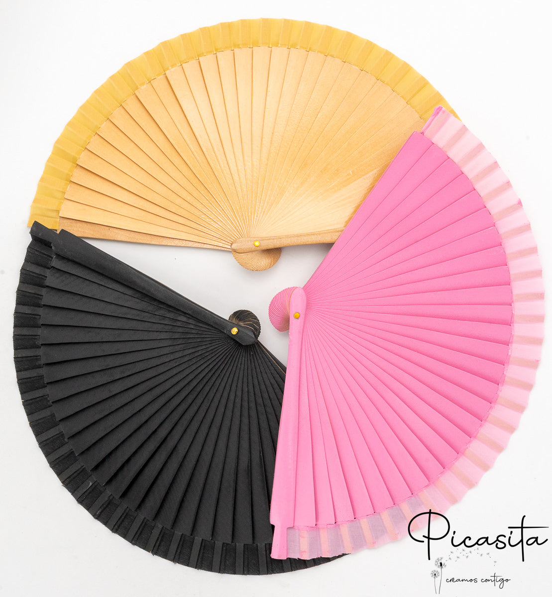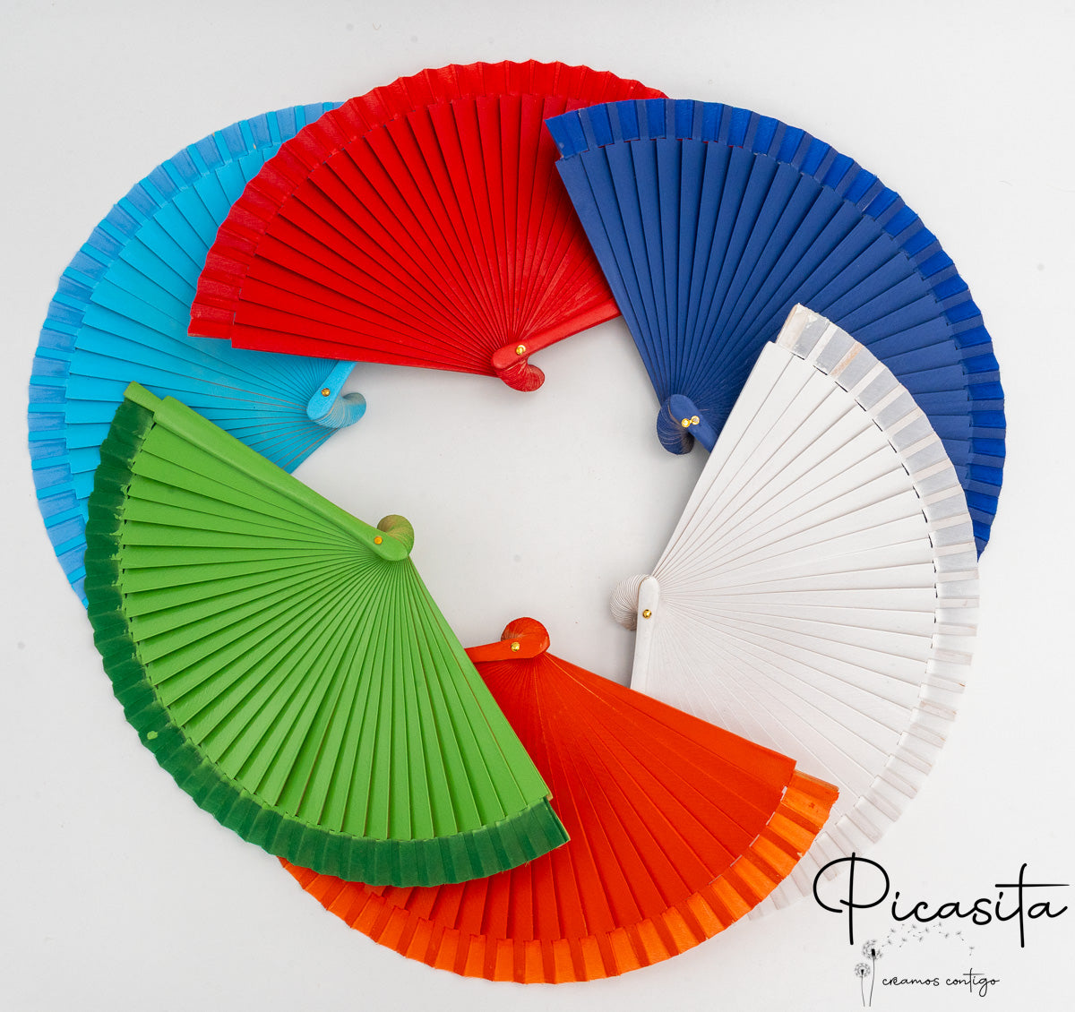 Si estás buscando el equilibrio perfecto entre precio, funcionalidad y estética, nuestros abanicos de colores son la solución definitiva. A diferencia de los modelos tradicionales frágiles, estos abanicos de madera lisa destacan por su construcción sólida y su varillaje pulido sin calados. Esto no solo les otorga una apariencia más moderna y limpia, sino que los convierte en un soporte ideal para la personalización. En picasita, entendemos que los detalles marcan la diferencia, por eso ofrecemos este producto que supera en calidad a los típicos abanicos de batalla, manteniendo un coste muy accesible.