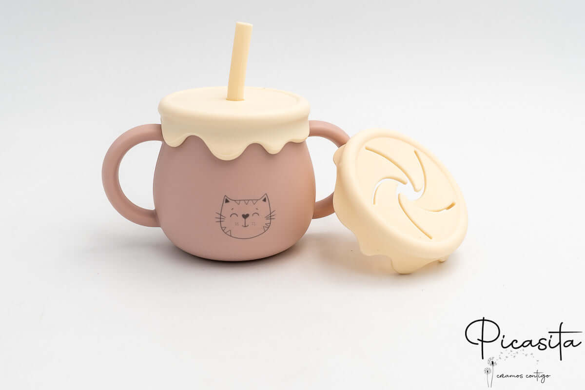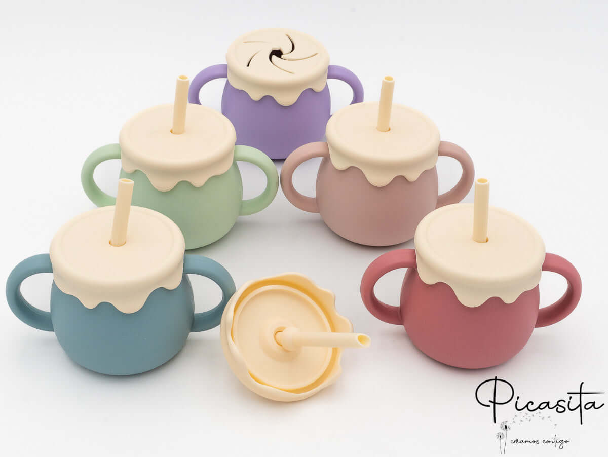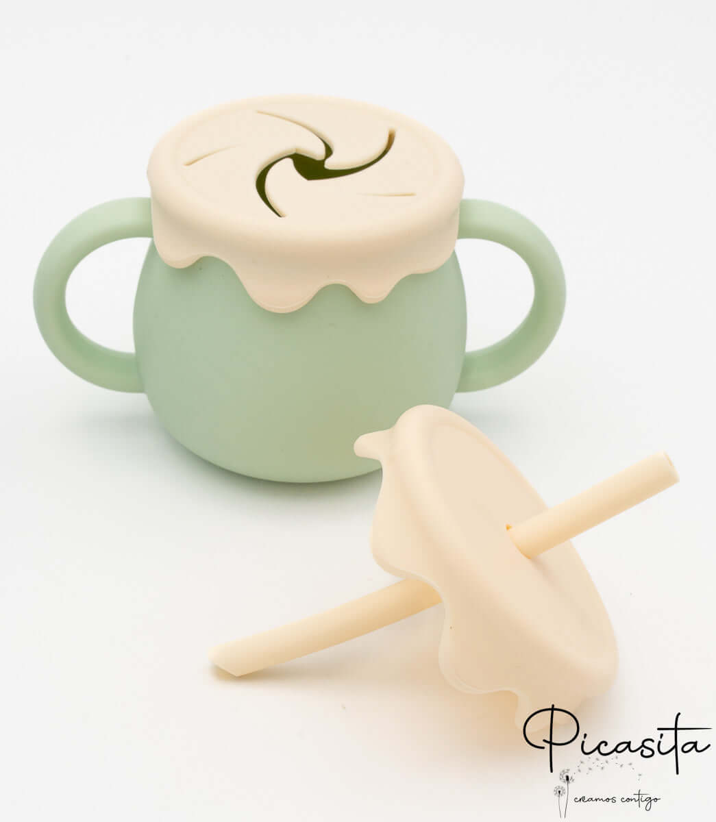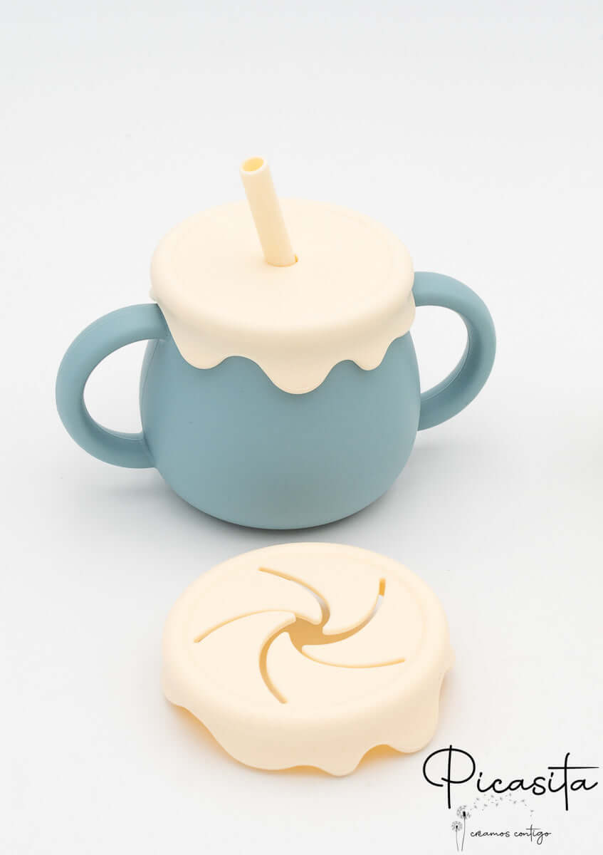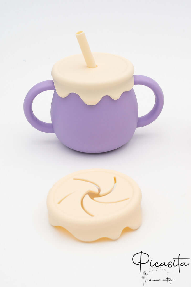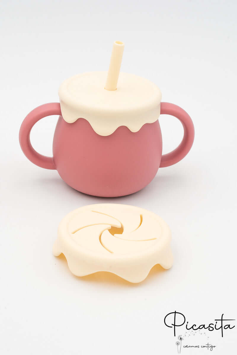 We know that the transition to solid foods can be a challenge full of spills and accidents. That’s why at picasita we’ve brought the perfect solution: a toddler cup designed to give parents peace of mind and little ones autonomy. With its adorable honey jar shape, this multi-use cup not only captures children’s attention and imagination but also solves the constant problem of tipped-over cups.