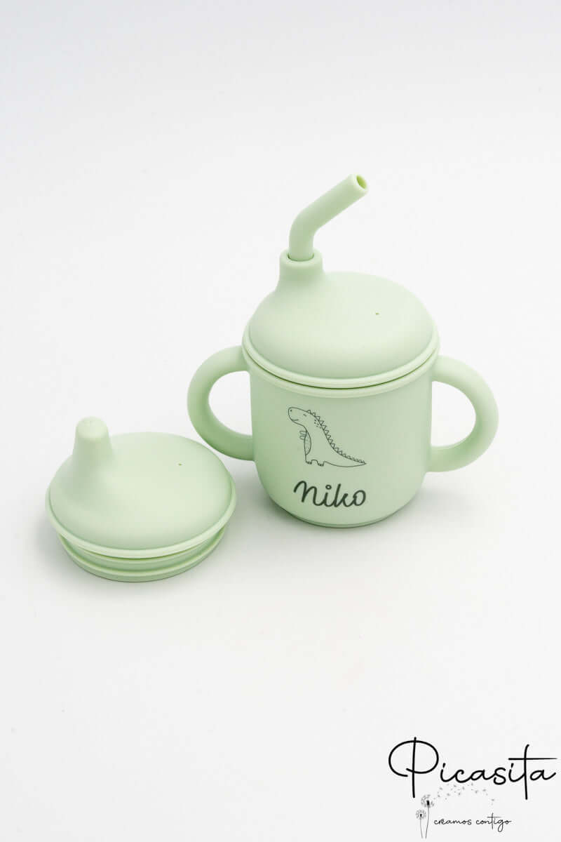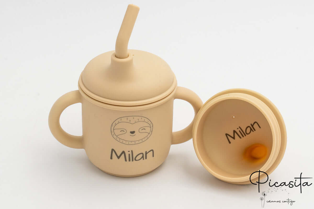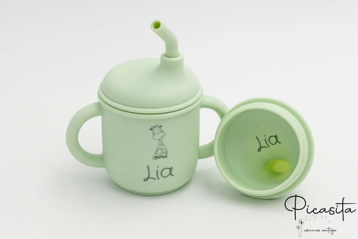To make this item a truly exclusive and heartfelt gift, we offer personalization using laser technology. This method engraves the child’s name and a cute little animal directly onto the silicone, leaving a permanent and elegant mark in a slightly darker tone that won’t fade, wear off, or use toxic inks. Additionally, the inside features practical capacity markers up to 150ml, and its double ergonomic handle is perfectly sized for their small hands, giving them the joy and confidence to do things on their own.