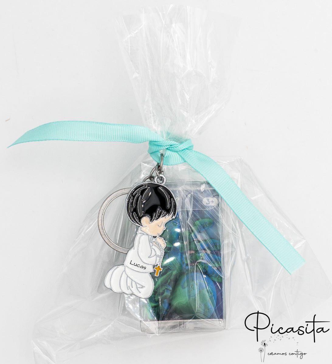 We know that organizing such a special event requires dedication and attention to every detail. That’s why we have created the ultimate communion gift bag, designed to lighten your workload and ensure every child takes home an unforgettable keepsake. By choosing these communion guest gifts, you get a complete solution: each gift arrives perfectly packaged in a transparent cellophane bag, hand-tied with a delicate mint-colored ribbon. Forget about last-minute crafts and focus on enjoying the big day!