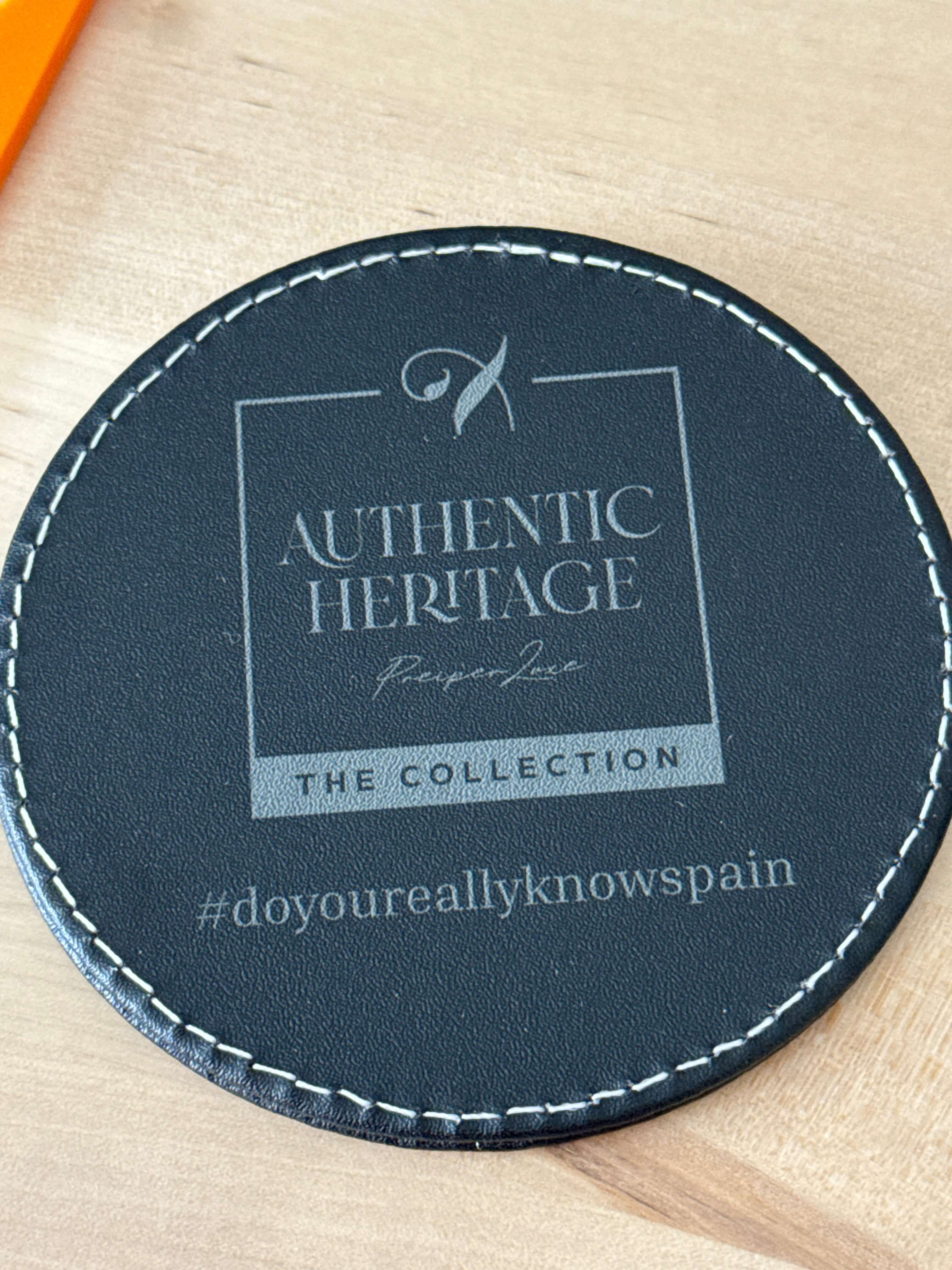 Laser engraving of 300 PU leather coasters with material provided by the client. 50 packs of 6 coasters + faux leather case.