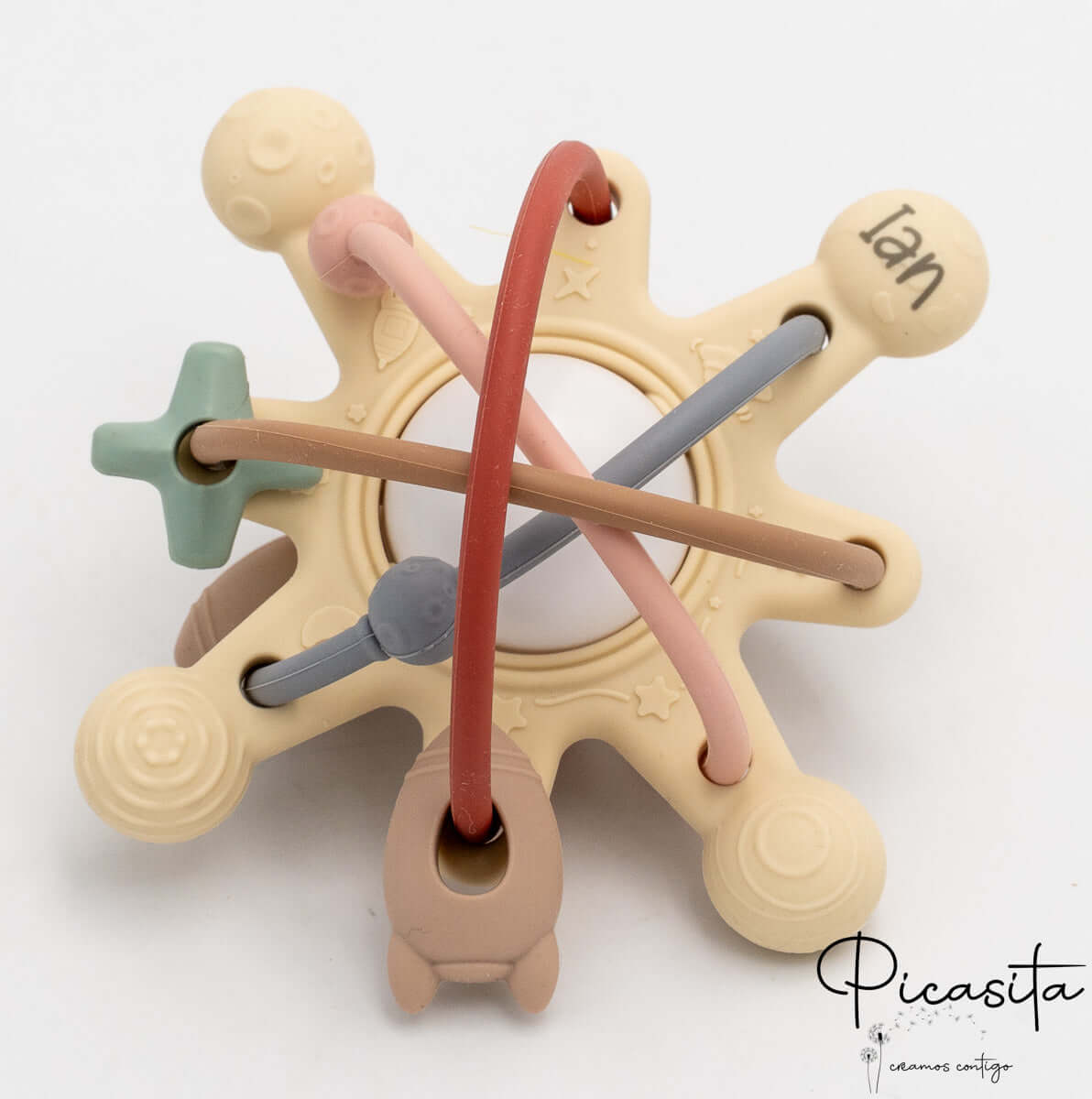 We know that your family’s safety and well-being are your top priorities. That’s why this silicone teether is made entirely from food-grade silicone on all its outer parts, ensuring it is completely safe for your little one to explore with their mouth. The different textures and incredible flexibility of the space pieces provide a gentle and comforting massage on inflamed gums, offering the natural relief they need during the emergence of their first teeth. Additionally, its ergonomic and lightweight design is perfect for their small hands, encouraging the development of fine motor skills and hand-eye coordination from the first months of life. If you want to complement this gift, explore more safe and beautiful options at Our Store.