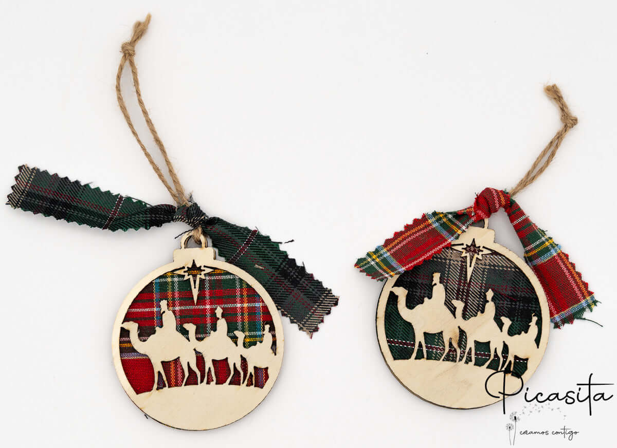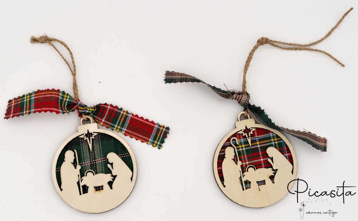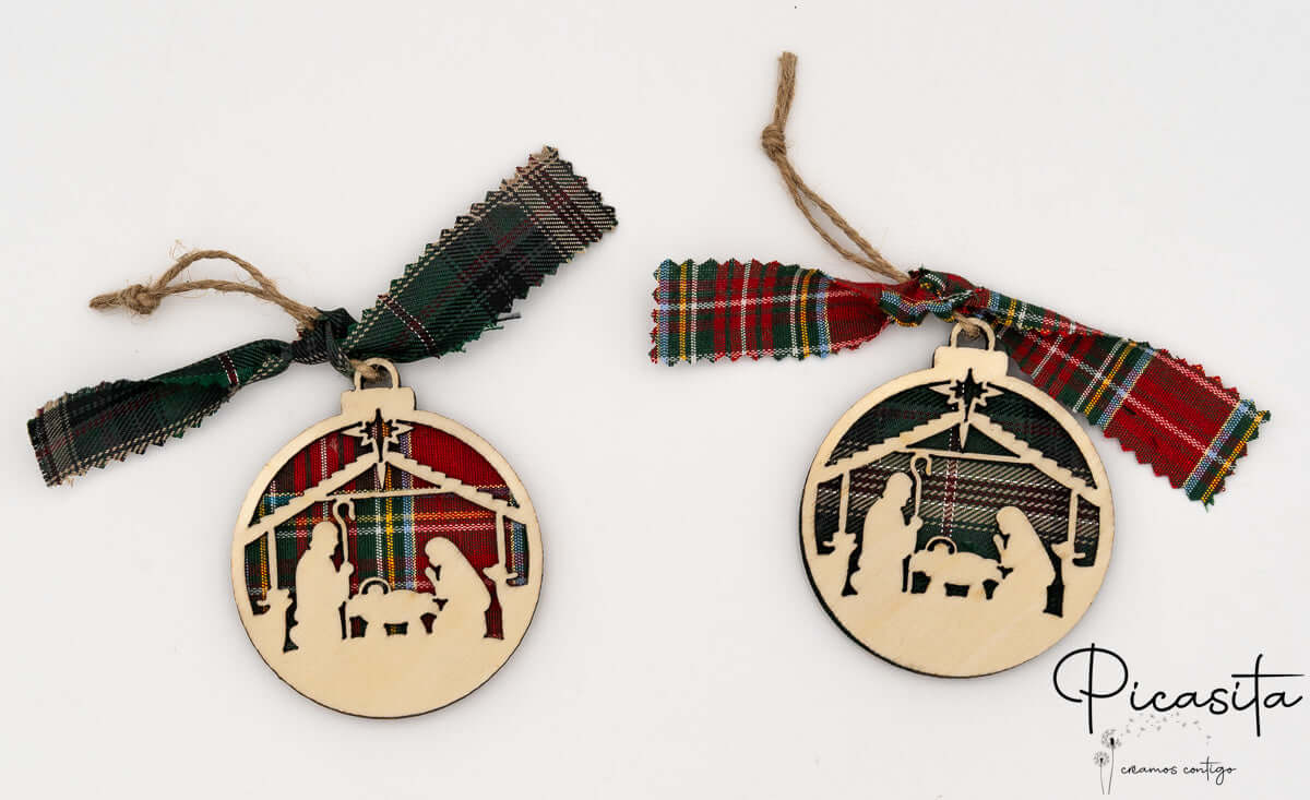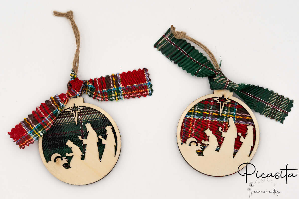 You can choose the background of your ornaments in two classic Christmas colors: Scottish plaid fabric in red tones or green tones, both very elegant and traditional.