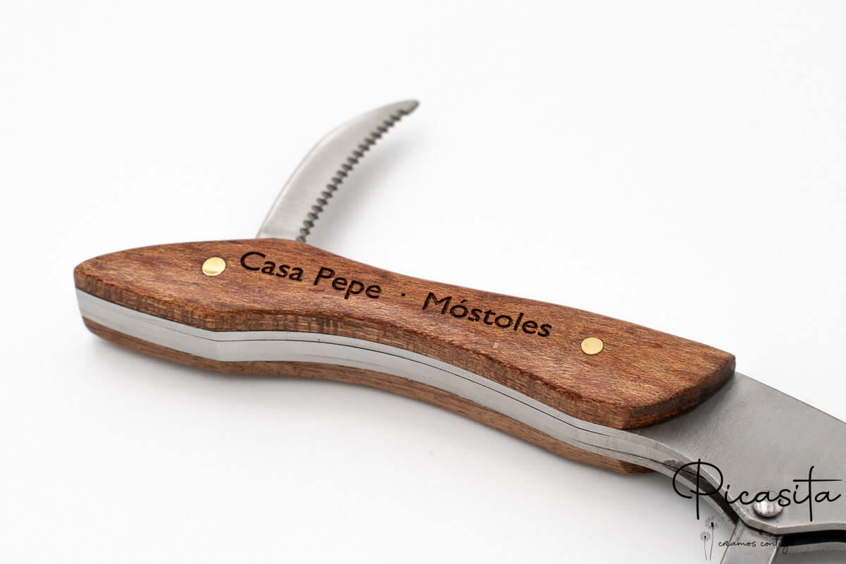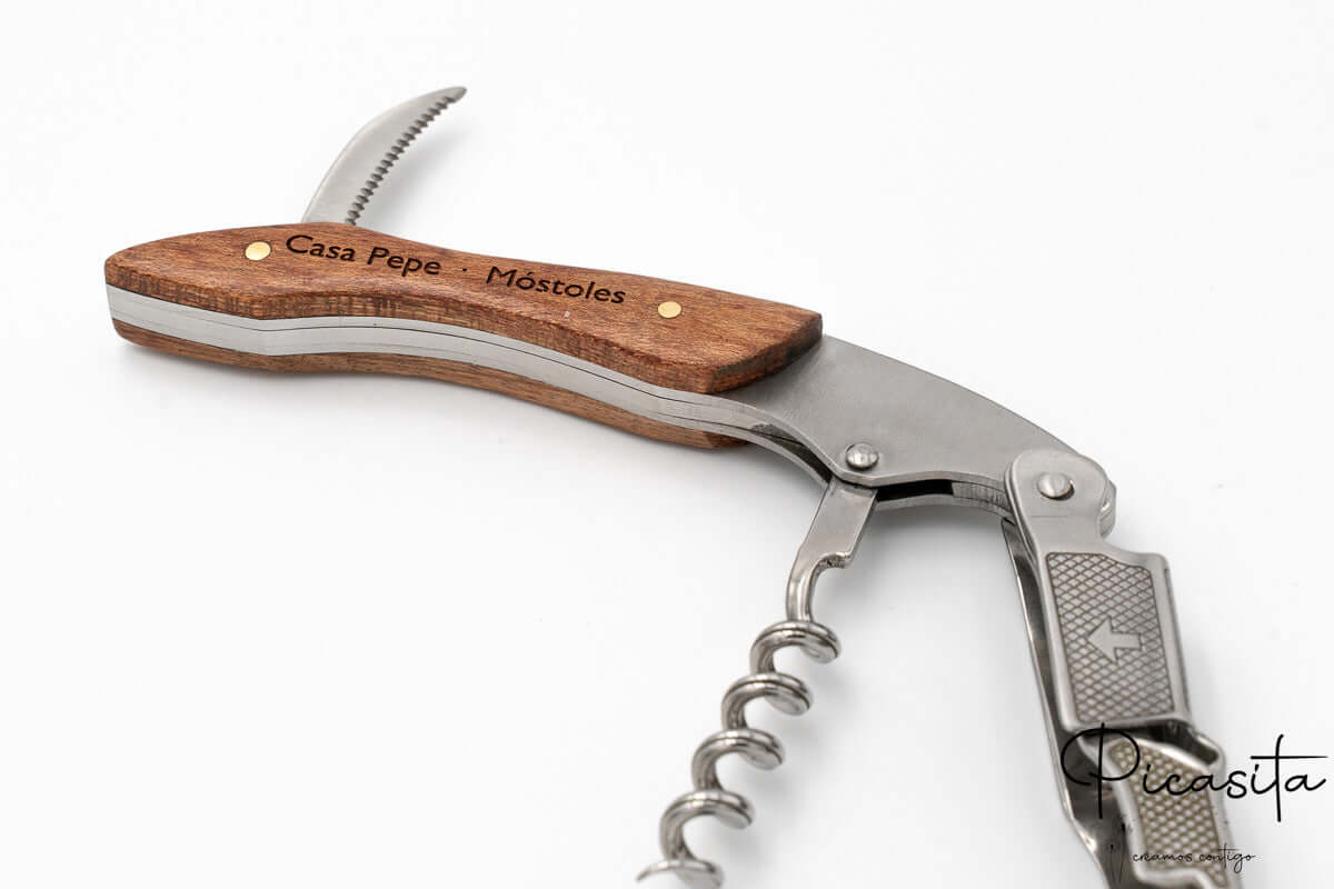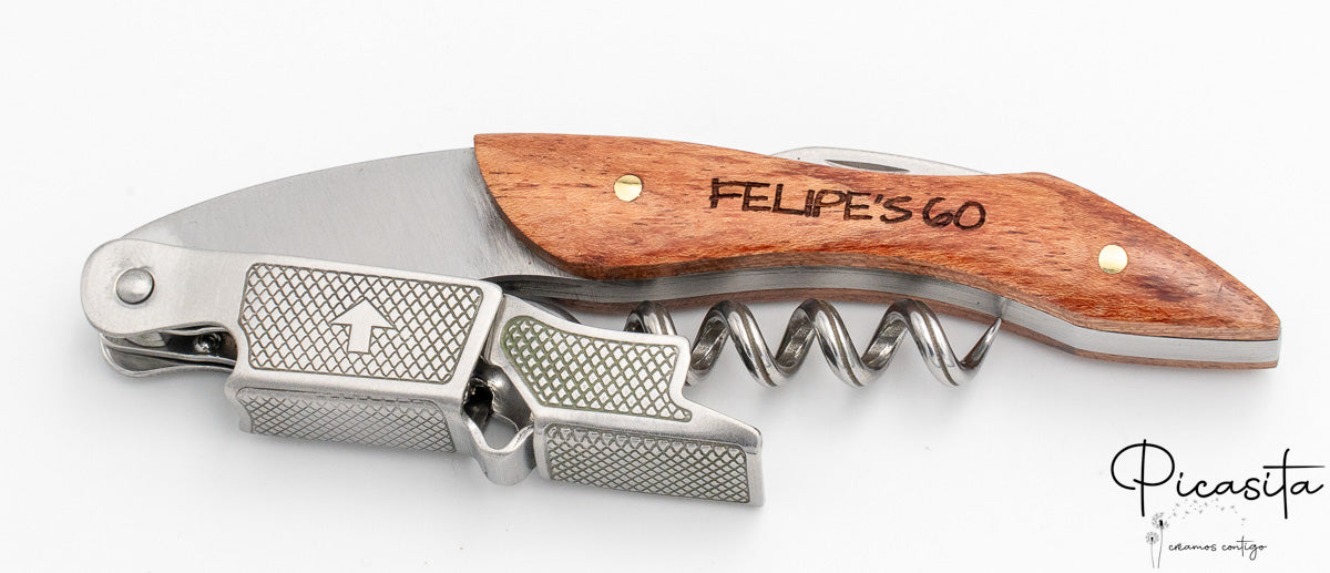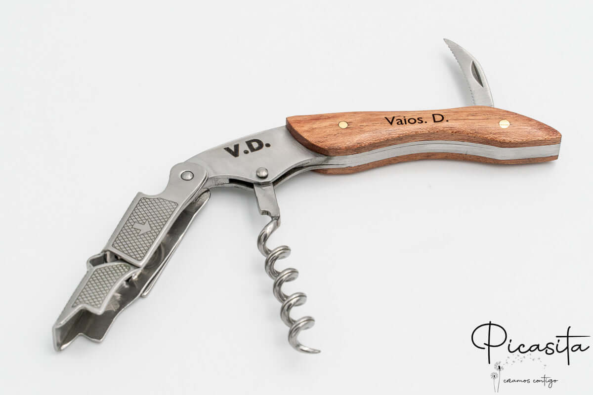 Opening a good bottle of wine is a ritual that deserves the best tool. Our personalized corkscrew in sommelier style is not just a high-precision utensil, but a tangible keepsake of life’s most special moments. Meticulously designed by combining the warmth of natural wood with the strength of stainless steel, this accessory becomes an extension of your good taste and appreciation for details. When browsing our catalog at Picasita, you’ll discover that we focus on creating emotional bonds and lasting memories through everyday objects of the highest quality.