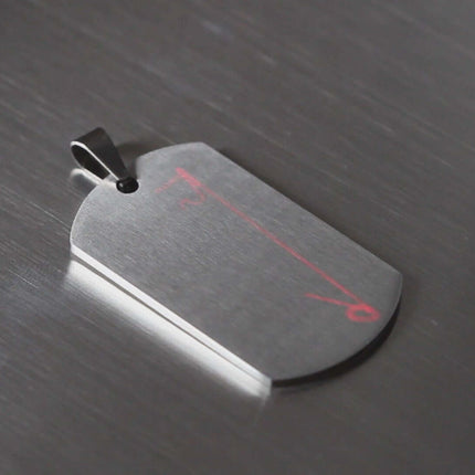 It is made of high-quality stainless steel, which guarantees its durability, shine, and rust resistance. Additionally, we offer a keychain variant that combines the steel tag with an elegant brown synthetic leather holder.