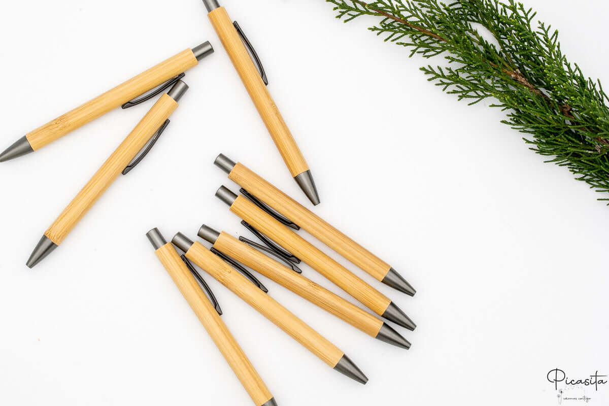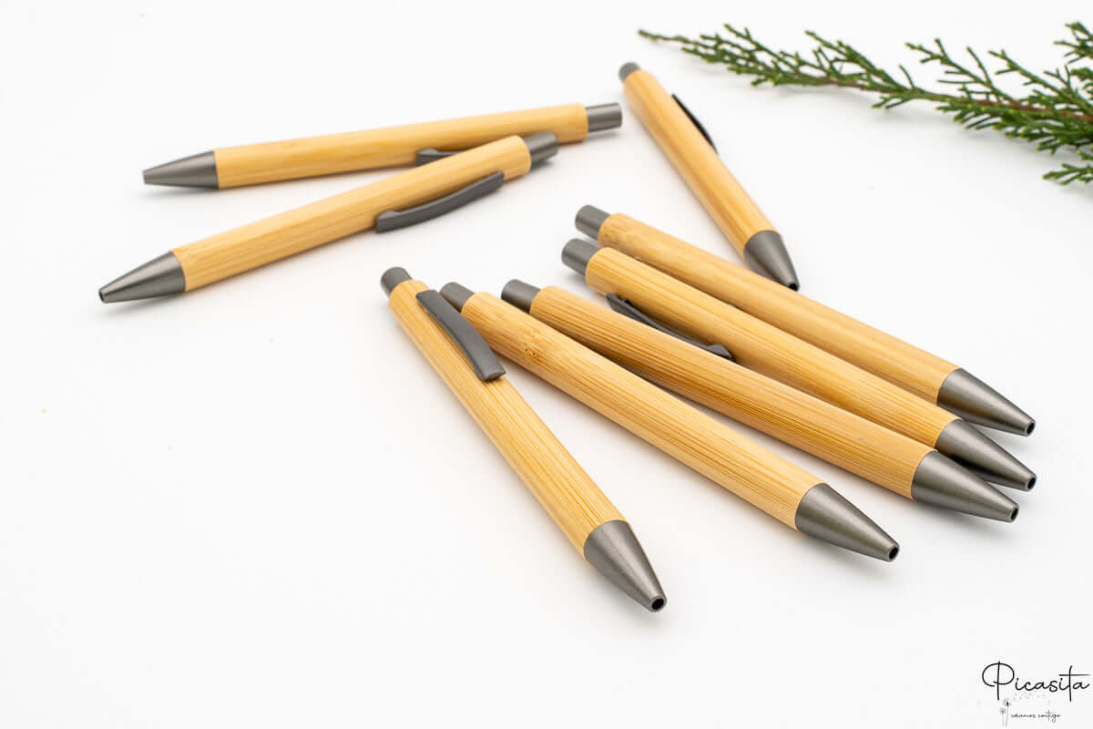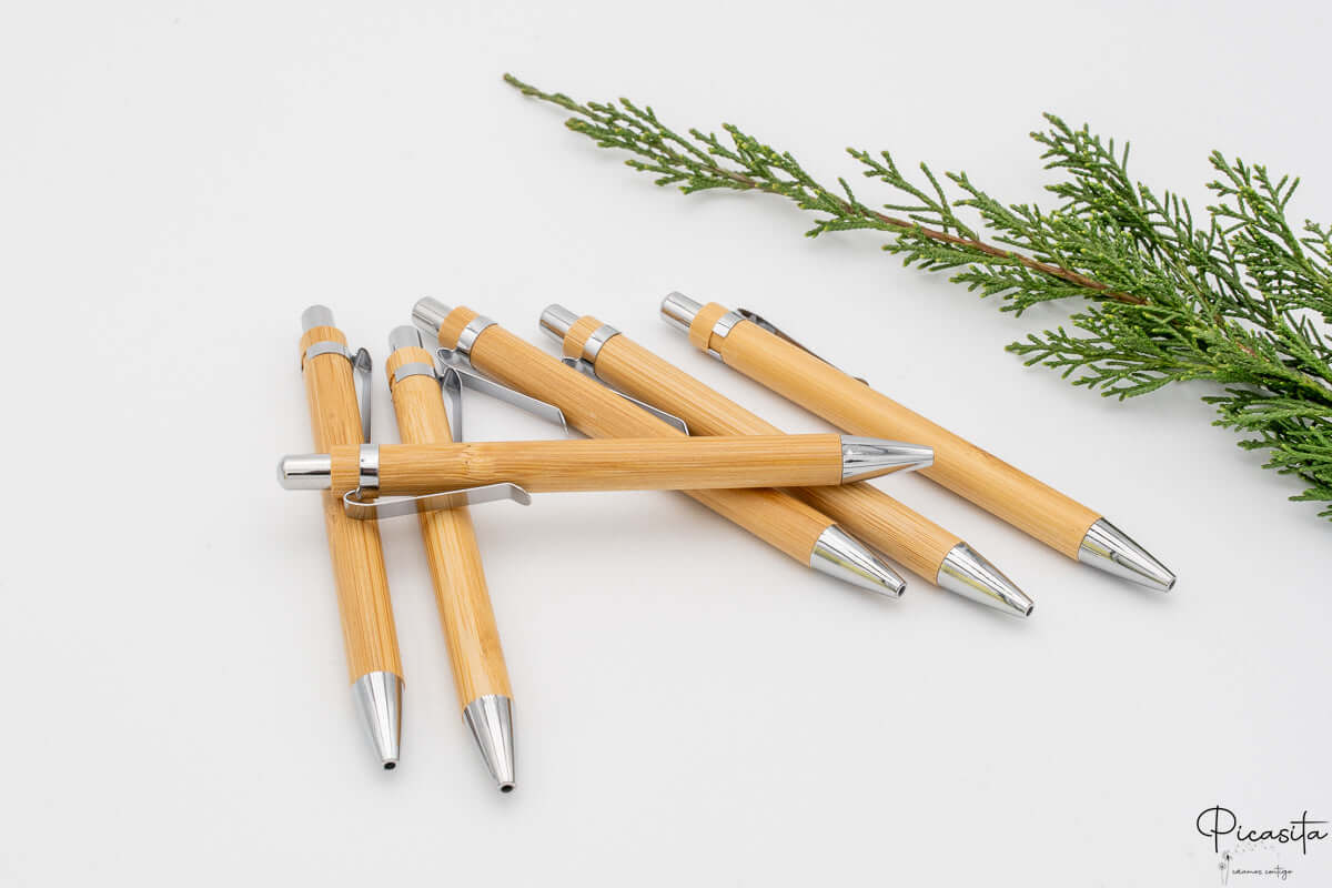 • ✨ Sorprende a todos con un boligrafo para invitados prĂĄctico, disponible en bambĂş natural o divertidos tonos pastel.