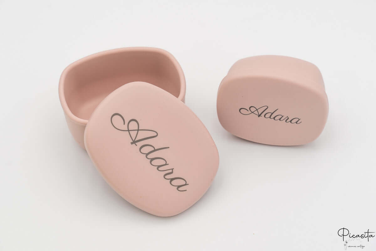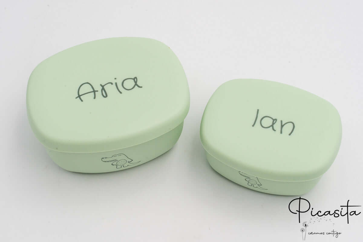 Of course! Personalization applies to both containers. You can ask us to engrave the name on both, or put the name on one and a fun icon (like an animal or fruit) on the other.