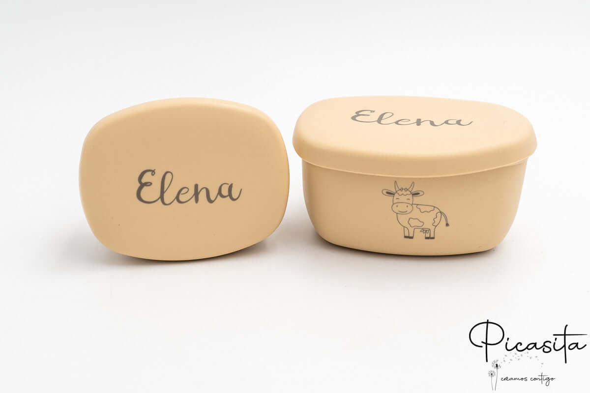 Forget about adhesive labels that peel off with water. We engrave each personalized lunchbox using high-precision laser technology. This method subtly burns the surface, leaving a permanent mark in an elegant gray tone that won’t fade, wear off with intense washing, or daily use. You can choose to add the name on both containers or combine a name on one and a cute animal or fruit on the other, making this set a truly heartfelt and practical gift.