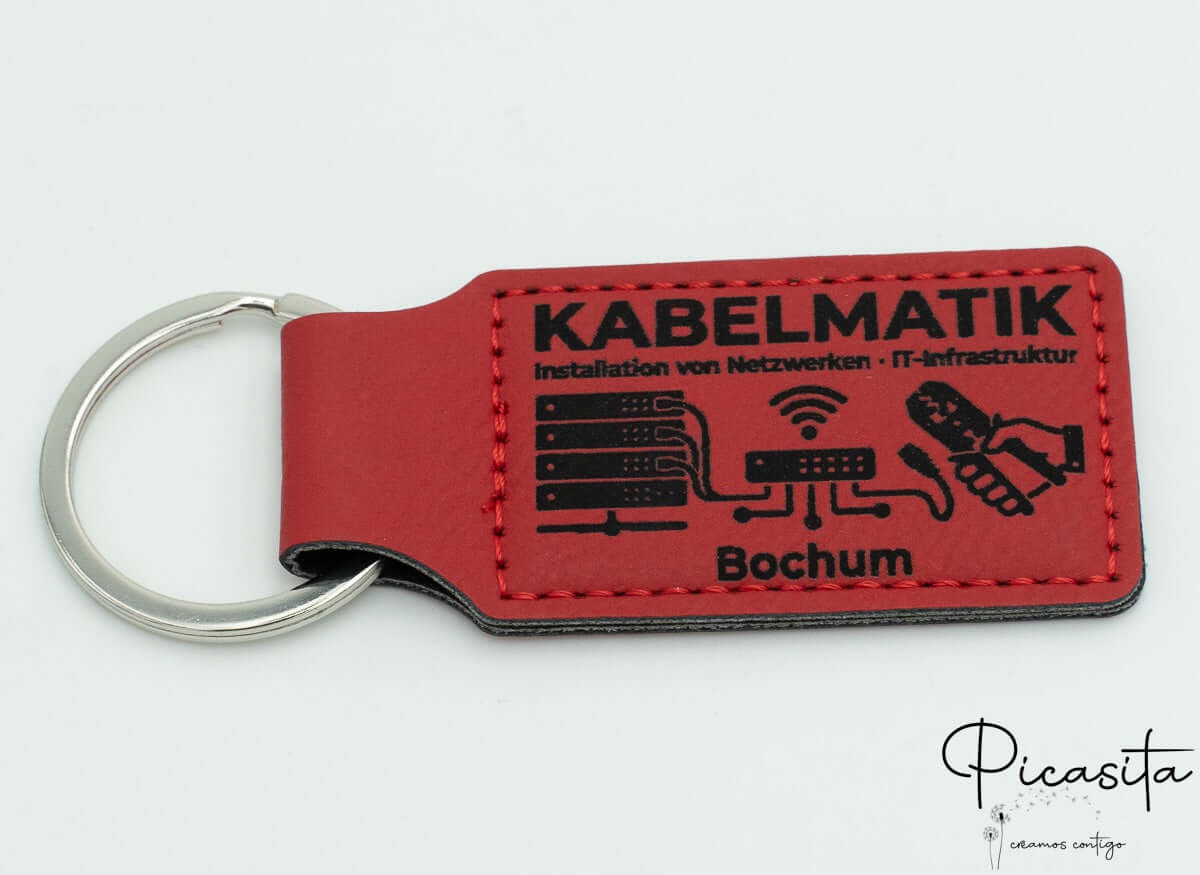 Made from durable polyurethane (PU) with a soft texture, these accessories stand out for their versatility. We use high-precision laser engraving technology to create your personalized keychain. This method doesnāt use inks that fade with friction; the laser subtly burns the surface layer to reveal an elegant inner color (silver or black, depending on the base model). This way, your keychain with text or your keychain with logo will keep its flawless look year after year, easily withstanding the daily wear and tear of pockets and bags.