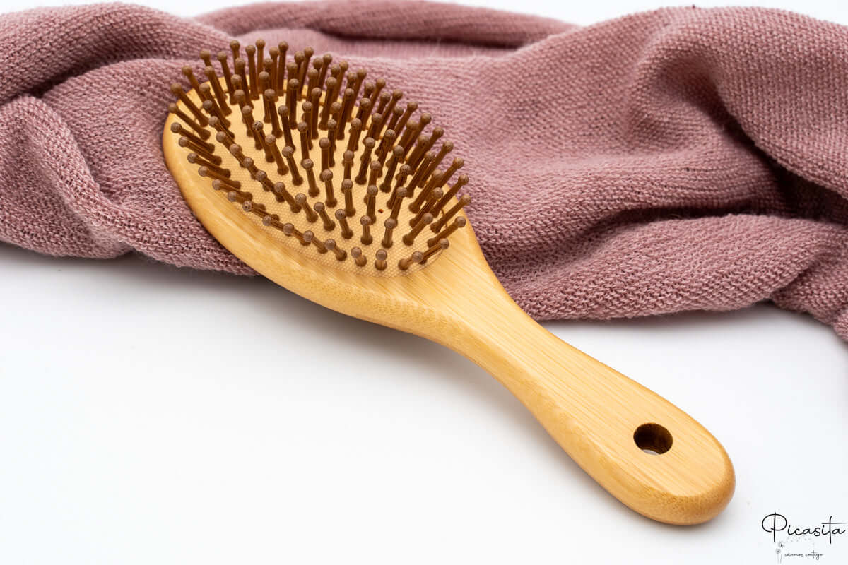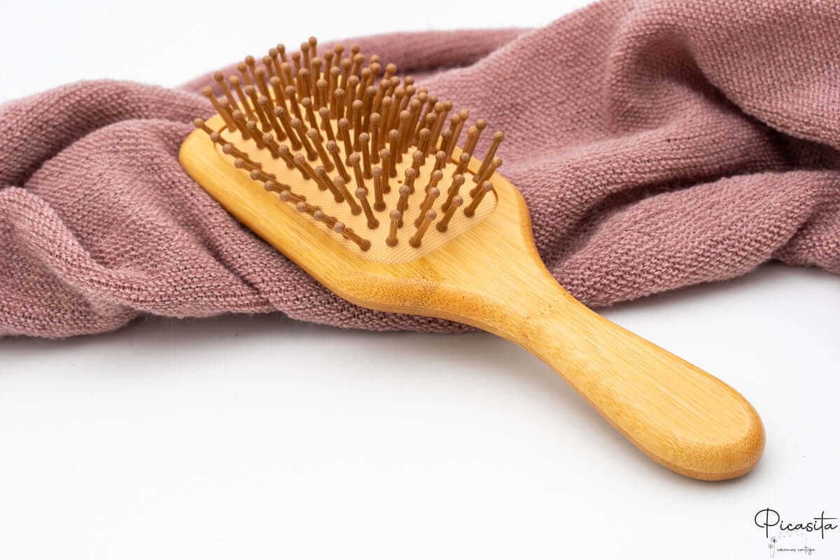 Its ergonomic design and bamboo bristles, with anti-static properties, reduce frizz and leave hair soft and shiny.