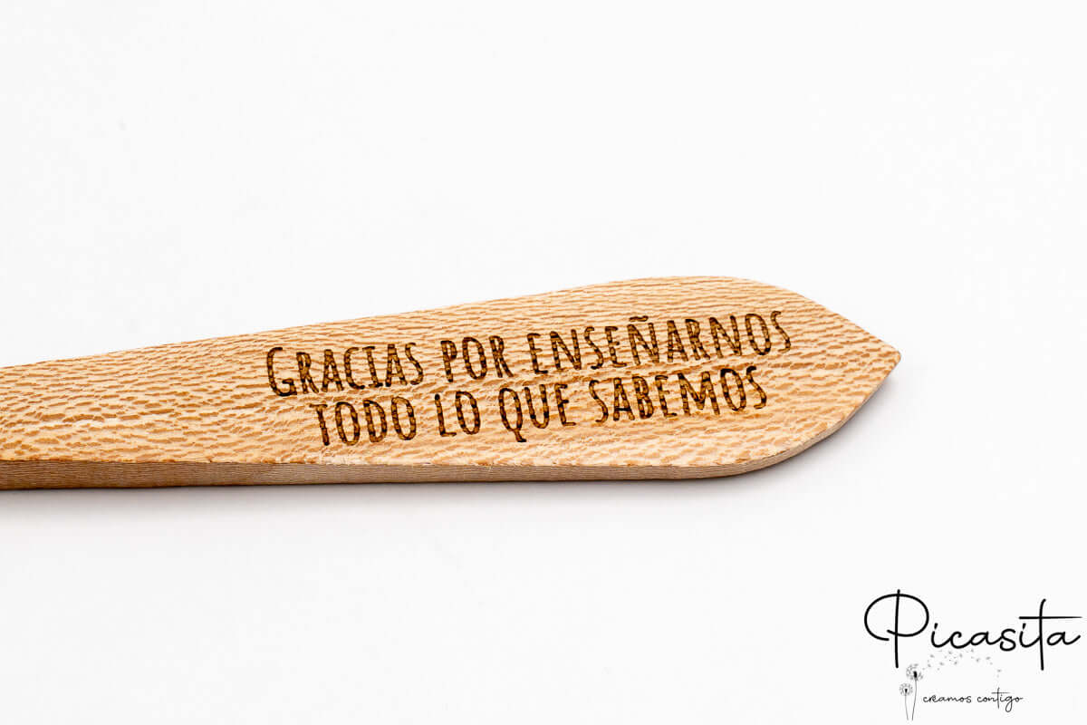 At picasita, we know the best moments are slowly cooked and shared in good company. That’s why our personalized spoon is not just another kitchen utensil; it’s a heartfelt tribute to those who nourish our bodies and souls with their recipes. Carefully crafted from natural wood, this piece measures approximately 25 cm and preserves the beautiful original grain of the tree, giving each unit that leaves our workshop a rustic, warm, and absolutely unique character.