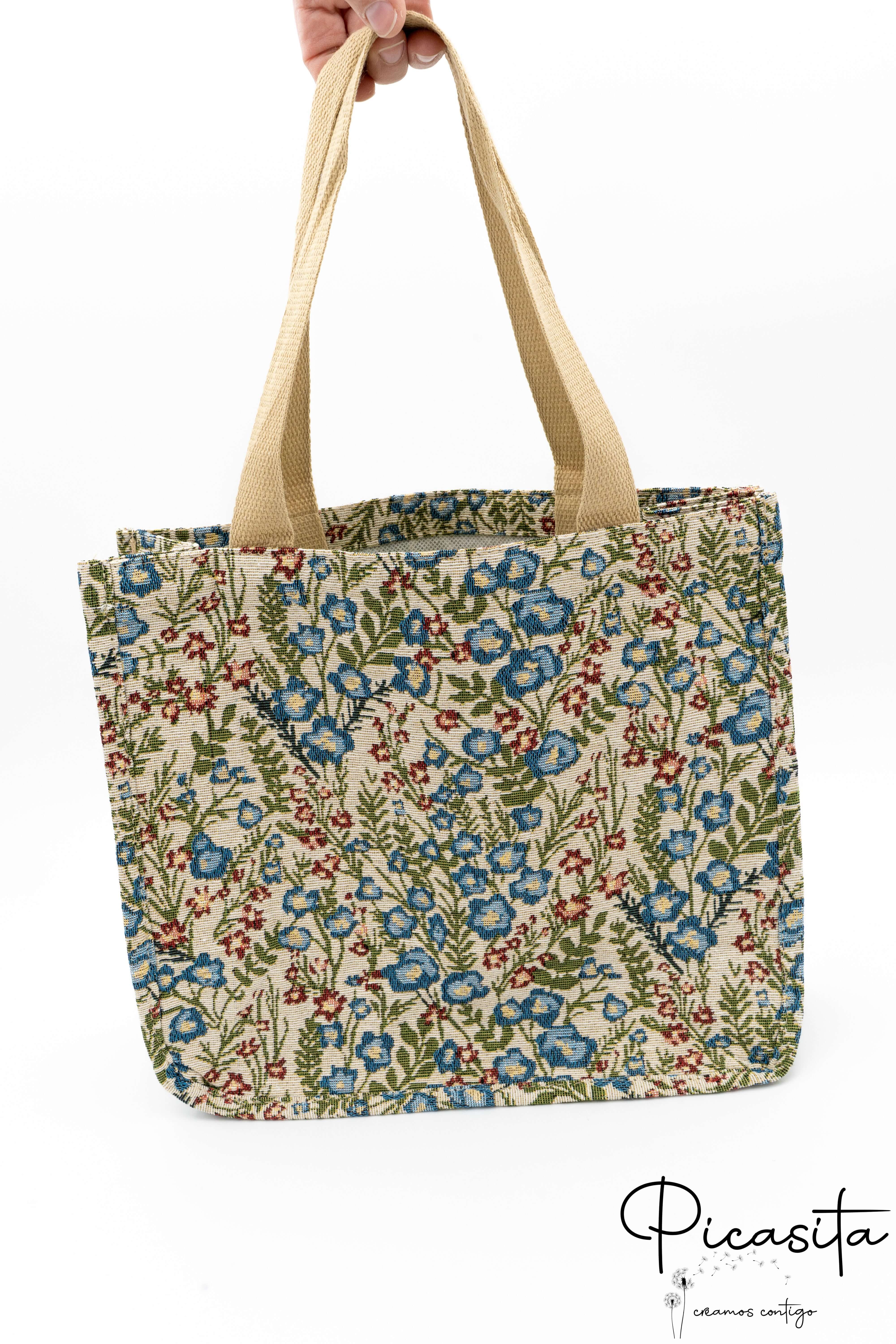 The charm of past decades is making a strong comeback. If you're looking for an accessory that combines the nostalgia of the 80s with modern functionality, our retro tote is the perfect choice. At picasita, we understand that a bag is not just a place to carry your things, but an extension of your personality. This retro tote bag stands out for its thick tapestry-like fabric, adorned with a delicate and colorful floral pattern that catches every eye and adds a unique texture to your outfit.