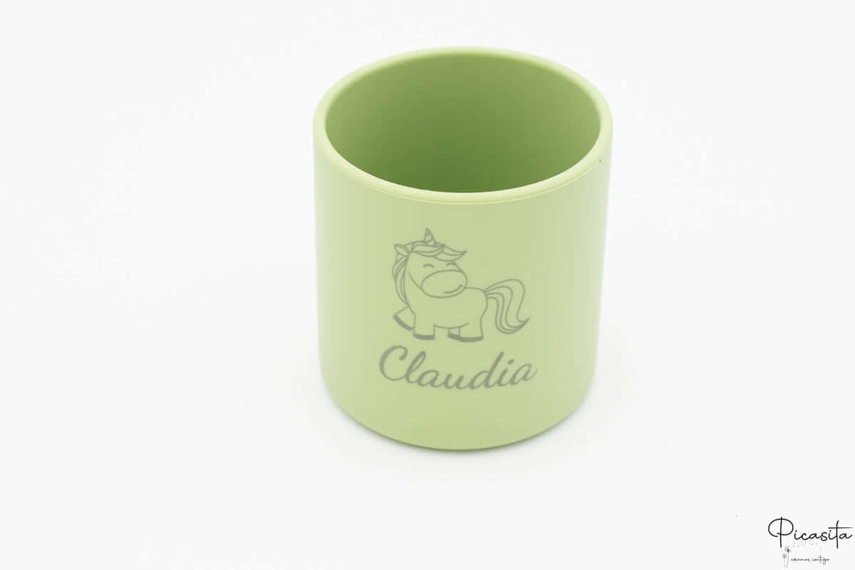 Getting the backpack ready for daycare can be a challenge, especially when it comes to labeling all their little things to avoid losses. This daycare cup is the ideal solution. Thanks to our precise laser personalization system, we engrave each piece with your child’s name, their favorite animal (like our adorable capybara or unicorn designs!) or a special drawing. The laser gently alters the silicone surface, leaving a permanent and elegant mark that will never fade, no matter how many times you wash it. Explore more amazing back-to-school options in our catalog.