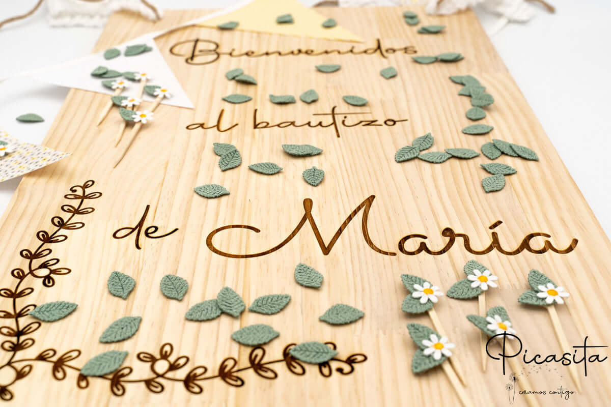 Imagine the faces of your family and friends when they arrive and find an impressive personalized board welcoming them. The dimensions of 60x40 cm and its 2 cm thickness make it sturdy and perfect to display on a decorative easel at the entrance of the church, venue, or garden. Whether it’s a classic message of welcome to baptism, a tender welcome to communion, or a design with a fully custom message for a wedding or birthday, at picasita we make sure every detail reflects the love and excitement you have put into organizing this very special day. Create unforgettable moments with pieces that speak from the heart.